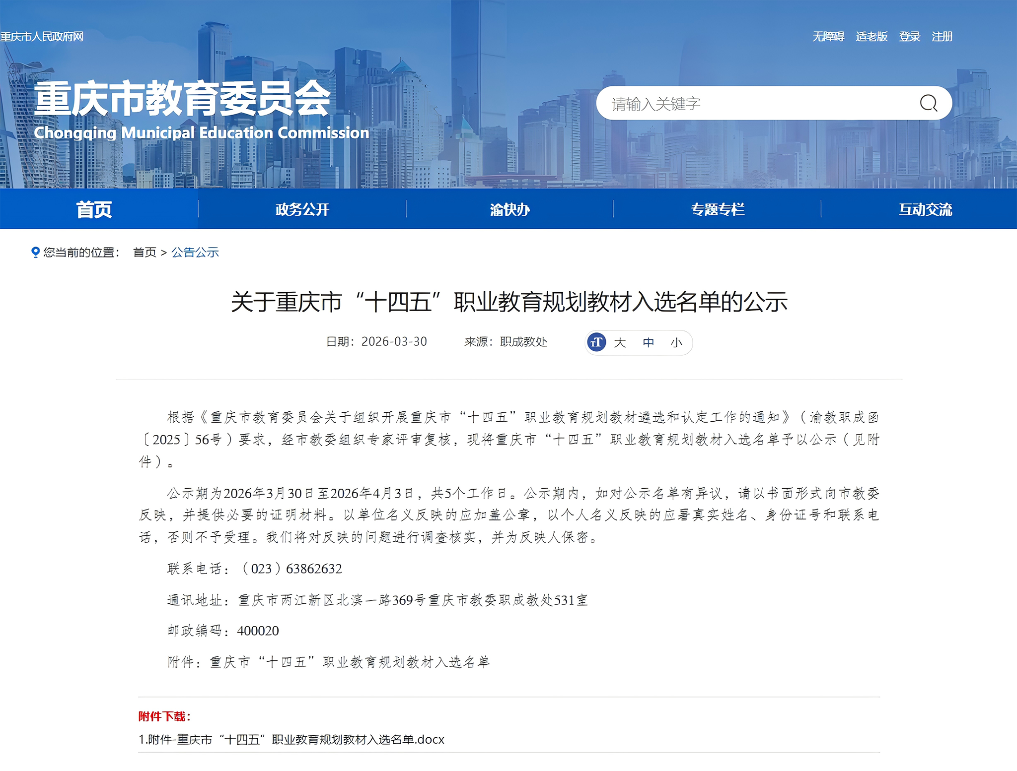 近日,重庆市教育委员会公示了“十四五”职业教育规划教材入选名单,我校申报的4本教材成功入选。这是学校深化“三教改革”、推进“岗课赛证”综合育人模式的又一重要成果,充分彰显学校在课程建设与教材开发领域的扎实成效。