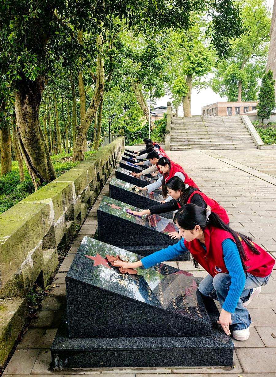 随后,大家依次上前,将纪念花轻轻摆放于烈士墓前,以朴素而庄重的方式寄托哀思、致敬英雄。活动尾声,校团委老师组织师生开展志愿服务。大家分工协作、有序配合,认真擦拭烈士墓碑、整治纪念设施周边环境,同时积极为烈属代祭扫、办实事解难题,以实际行动寄托对革命先烈的无限崇敬与深切缅怀,进一步营造尊崇英烈、缅怀英烈、关爱烈属的浓厚氛围。