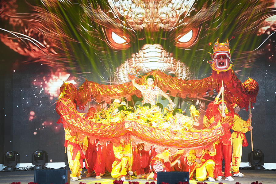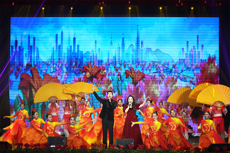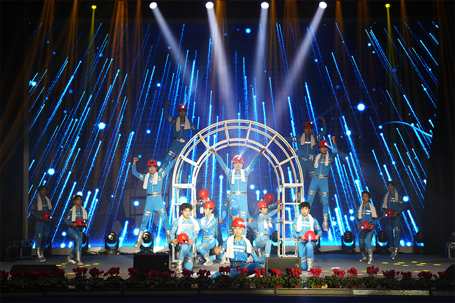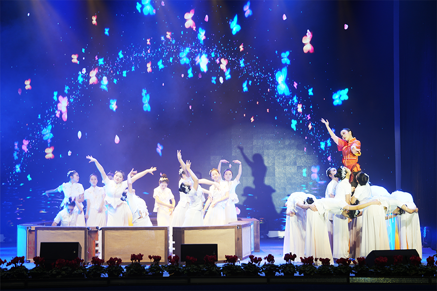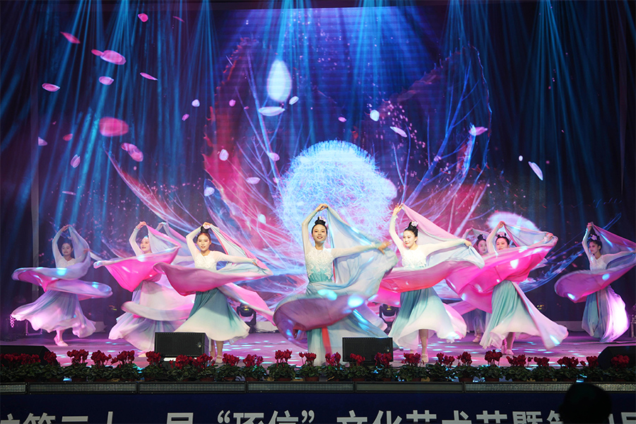 当晚的文艺汇演将本届艺术节推向高潮。演出分为“技韵流光·青春启航”“匠心织梦·融合绽放”“智创未来·锦绣华章”三个篇章,师生自编自导自演的14个节目依次登场。舞蹈《龙耀中华》气势恢宏,展现青年奋进之志;音诗画《巍巍工商,一路荣光》诠释“厚德强技、知行合一”的工商精神,展现了学校深耕职教、砥砺前行的奋斗历程;走秀《潮起东方韵》融合发族特色与时尚元素,彰显学子对美与创新的理解;歌伴舞《一江精彩在江津》则以悠扬旋律和优美舞姿,呈现江津的山水人文之美……整场演出精彩纷呈,为观众带来一场融青春风采、专业特色、校园情怀于一体视听盛宴。