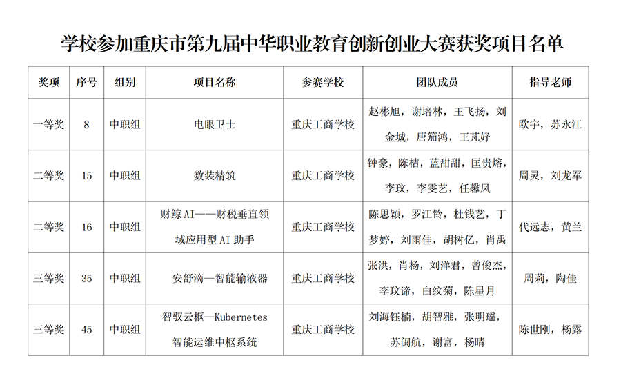 近日,重庆市第九届中华职业教育创新创业大赛圆满落幕。重庆工商学校凭借出色的组织与优异的参赛表现,荣获一等奖1项、二等奖2项、三等奖2项,同时被授予“优秀组织奖”。
